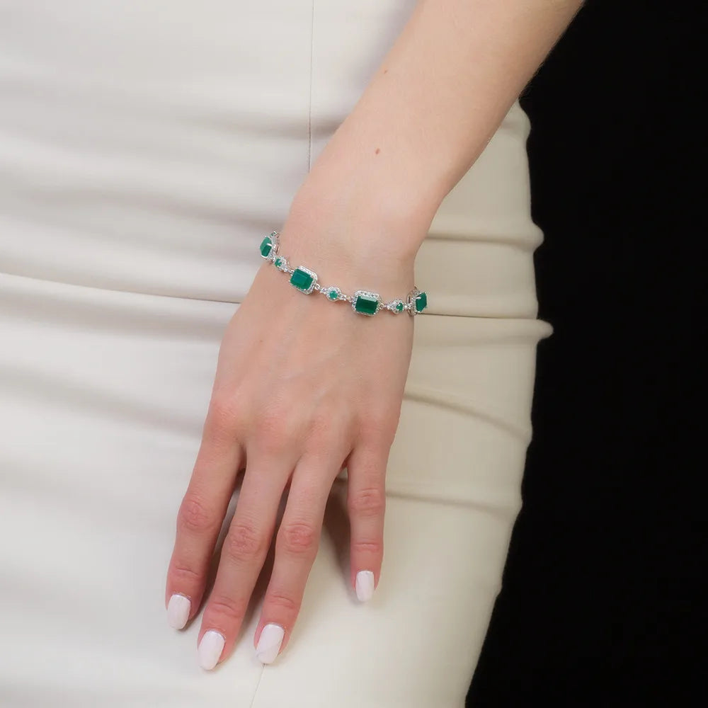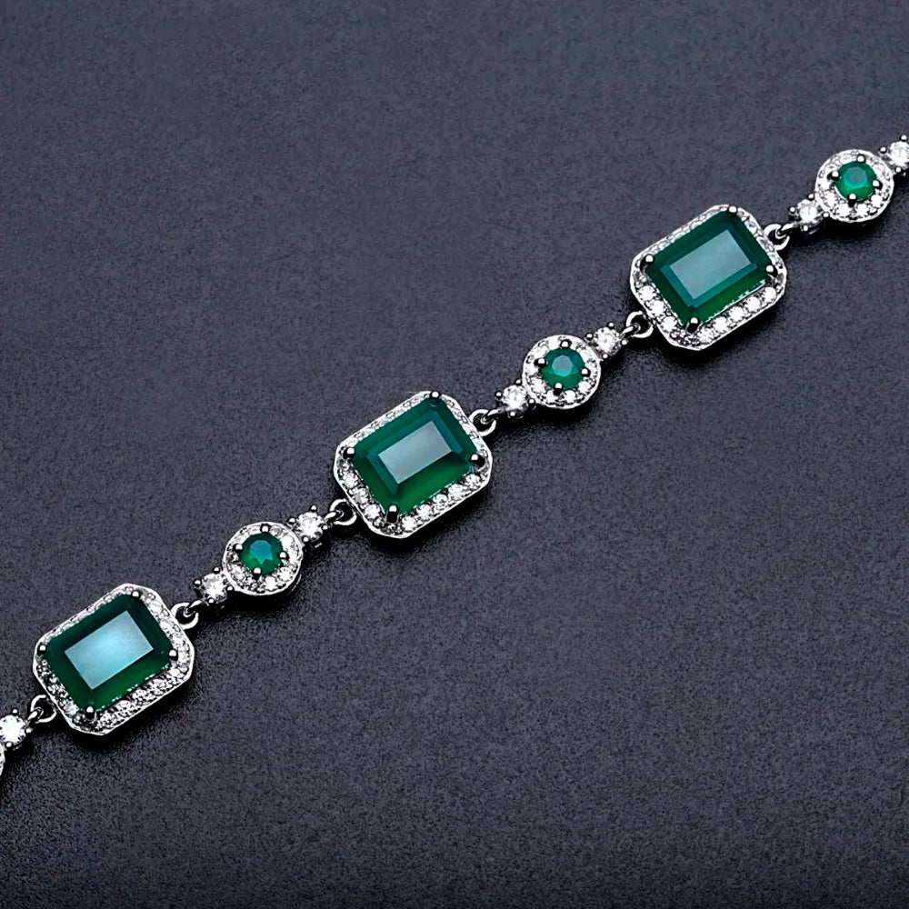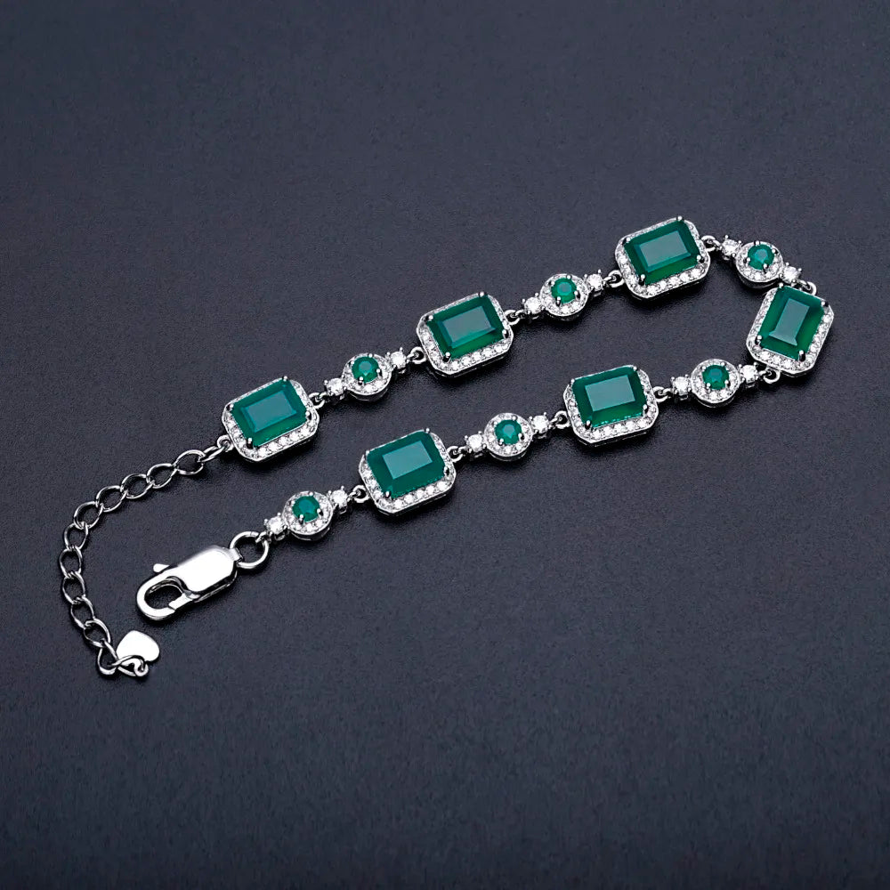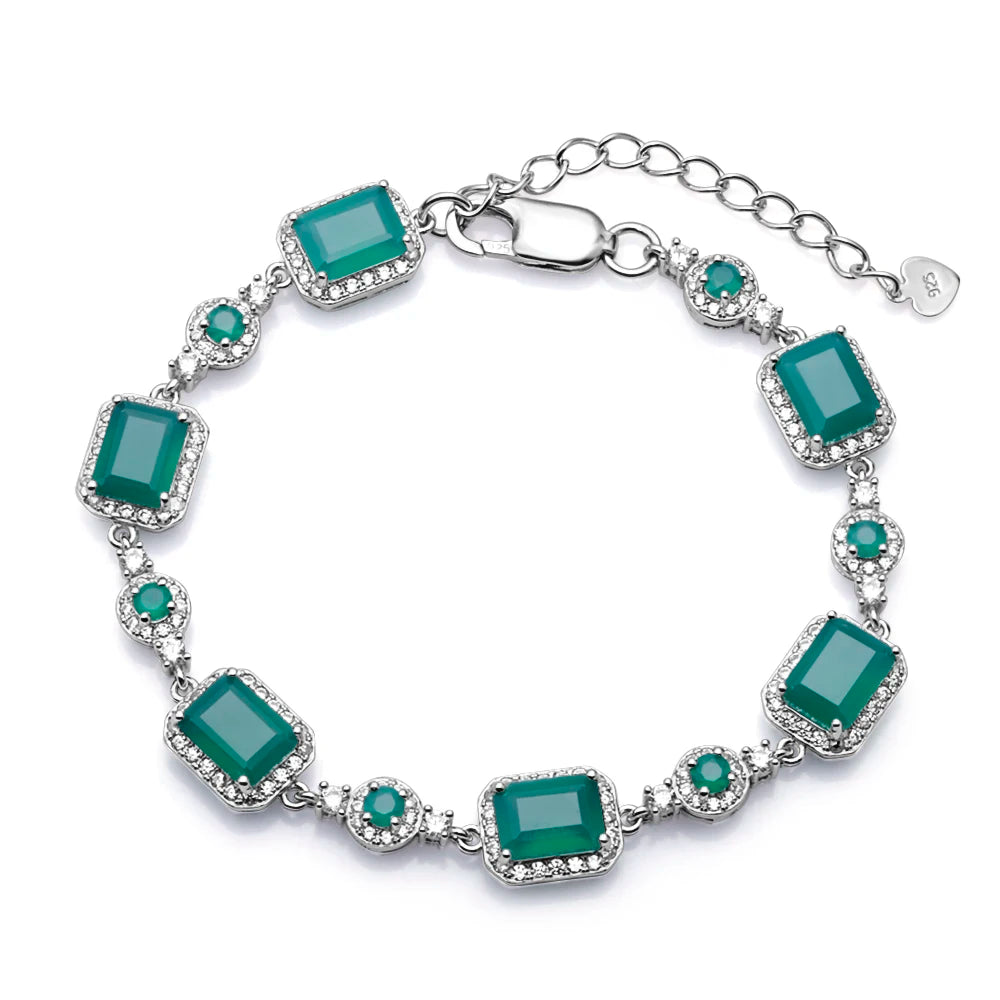 Grace meets grandeur in this elegant vintage style bracelet, where finely cut agate gemstones and shimmering cubic zirconia accents are set in lustrous 925 sterling silver.