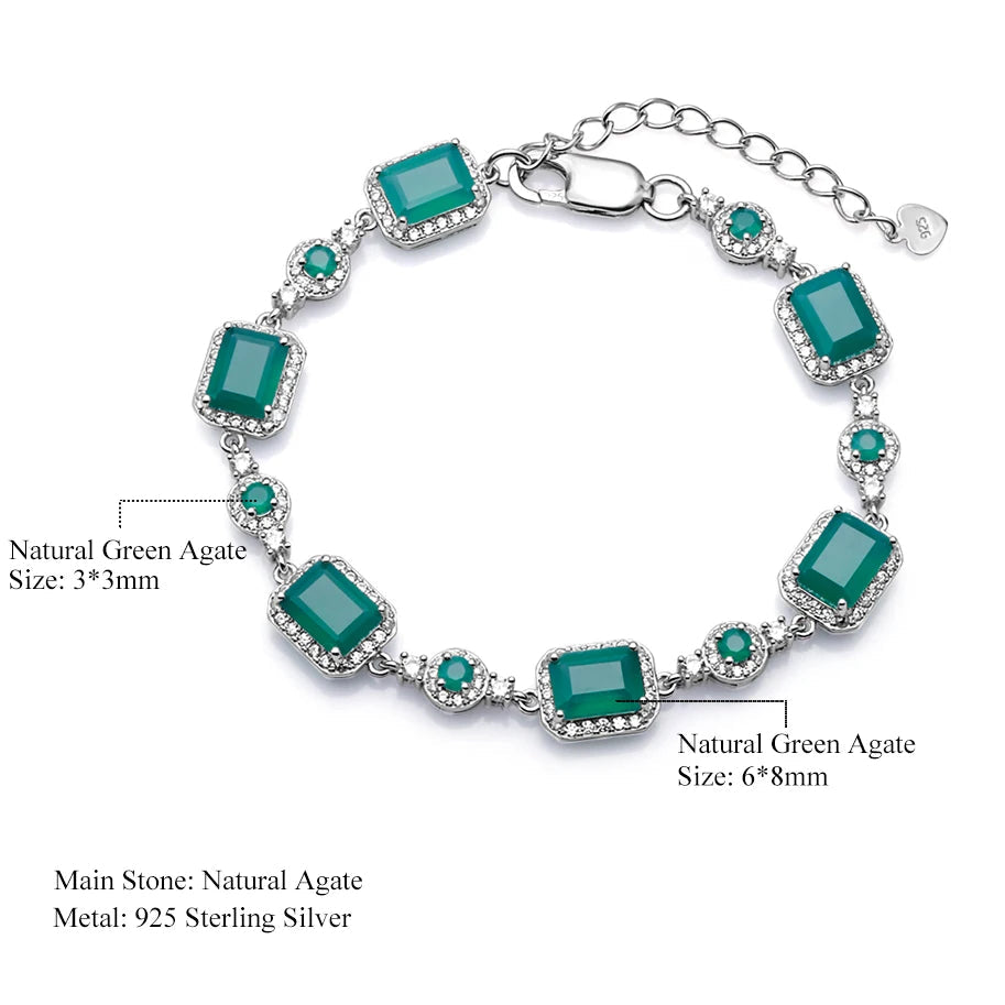 925 Sterling Silver, Natural Agate Stone & Cubic Zirconia Rectangle Cabochons Women's Bracelet