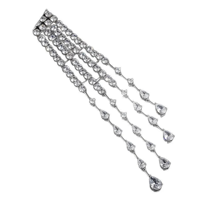 Exquisite Crystal Shoulder Chain Women's Long Tassel Brooch