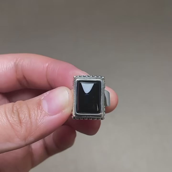 Lucifer Morningstar Real S925 Sterling Silver Ring with Natural Black Onyx Stone