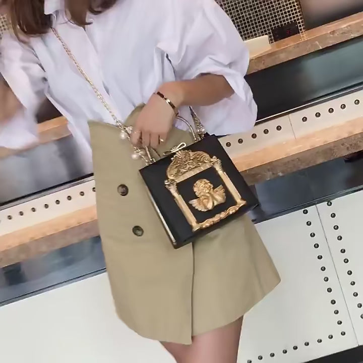 Luxury Cupid Angel Gilded Vintage Style Square Faux Leather Women's Handbag