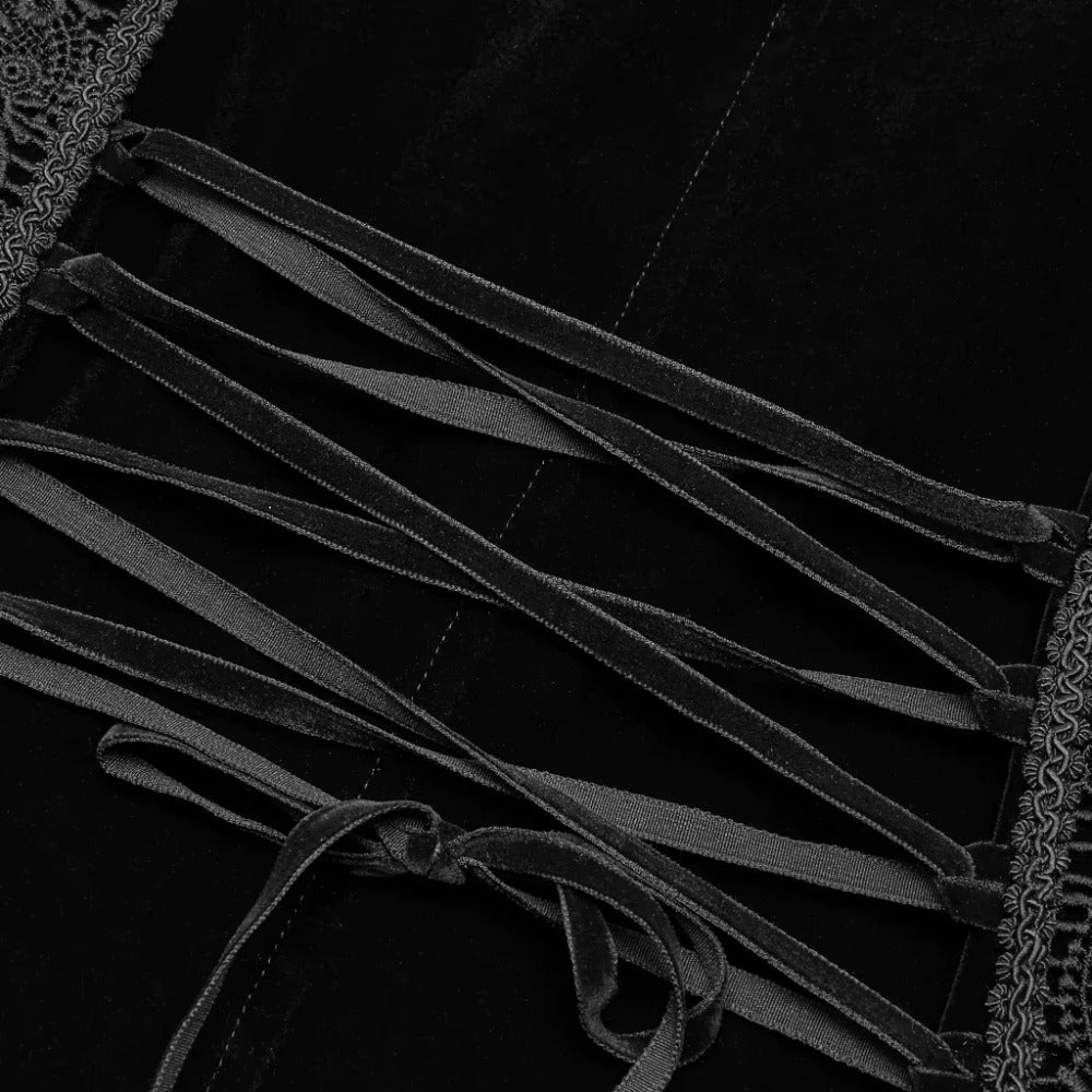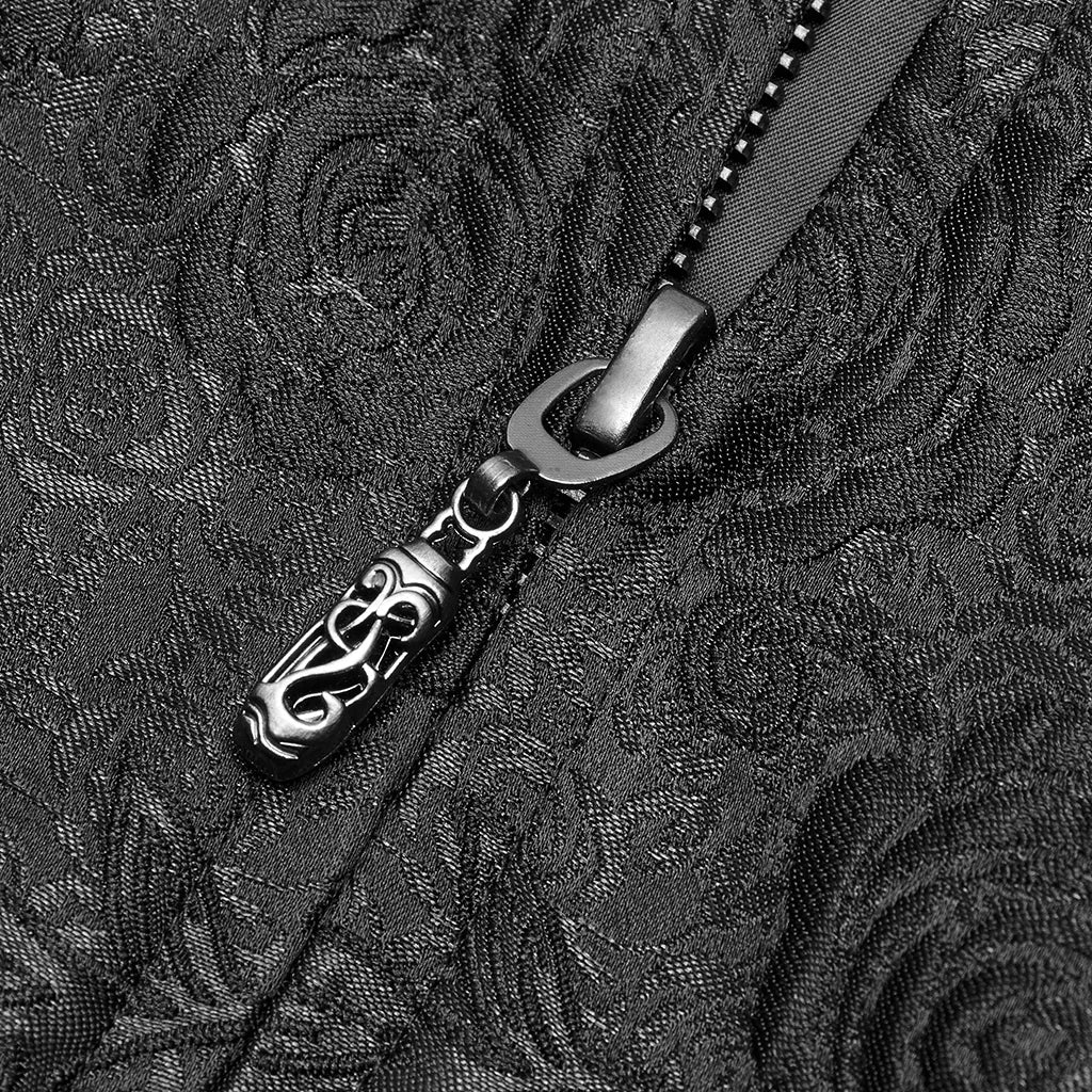 - Design Details: front panel mimics a layered vest, sleeves feature stitched jacquard insets, and delicate flower lace adds refined Gothic flair.