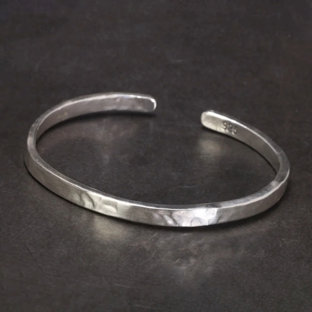 Elevated simplicity meets timeless craftsmanship in this men's hammered cuff bangle, forged from genuine S925 sterling silver. The hand-polished finish and textured surface create a bold yet refined statement—perfect for everyday wear or special occasions.
