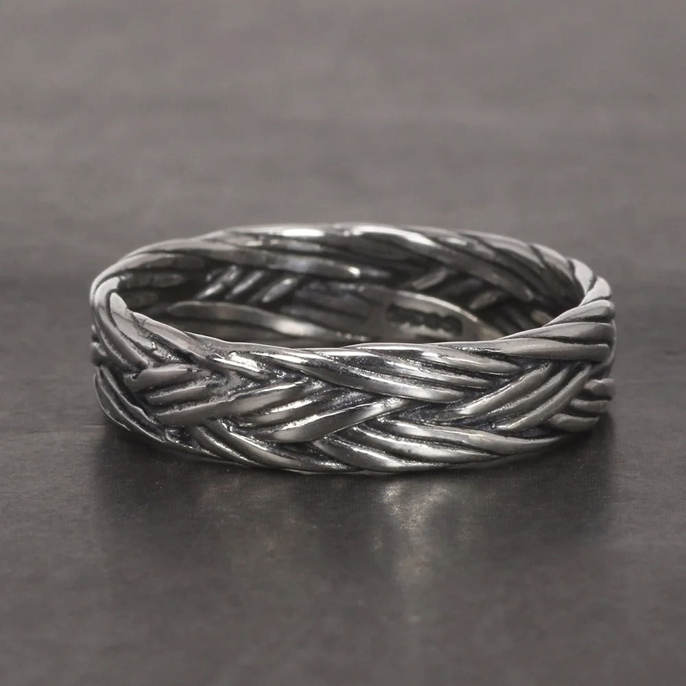 Bold heritage meets modern craftsmanship in this Viking-inspired braided ring, forged from genuine S925 sterling silver. The intricate double-braid design evokes strength and tradition, while the polished finish adds a sleek, contemporary edge. Lightweight yet durable, it’s the perfect statement piece for men who value timeless style and meaningful detail.