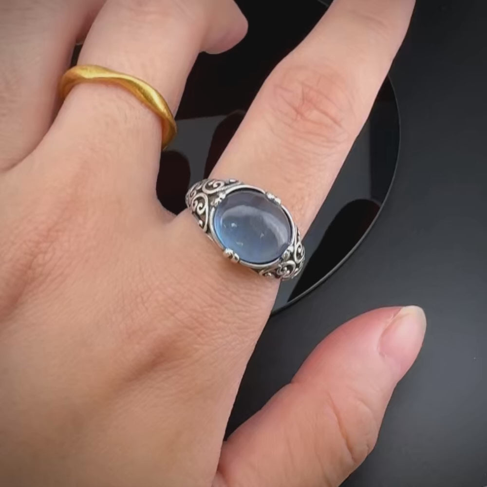 Shimmering with ocean-inspired beauty, this vintage S925 sterling silver ring features a natural aquamarine ore in an elegant oval cut. The raw, organic charm of the gemstone is perfectly balanced by the smooth, polished silver band, creating a timeless piece that’s both sophisticated and unique. Lightweight yet durable, it’s designed for comfort and everyday wear while making a statement of refined style.