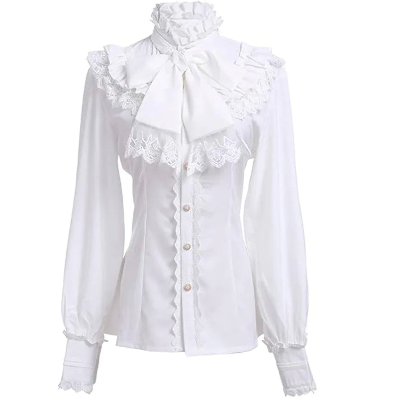 Vintage Victorian Women's Lolita Style Ruffled Long Sleeve Gothic Shirt