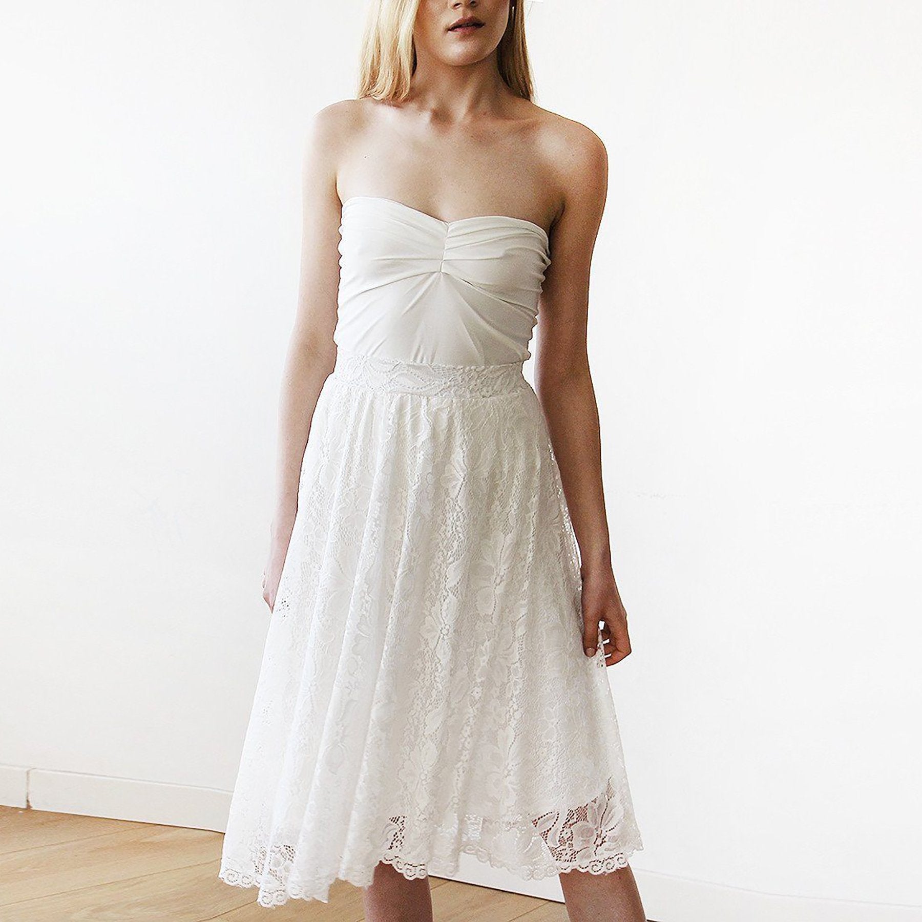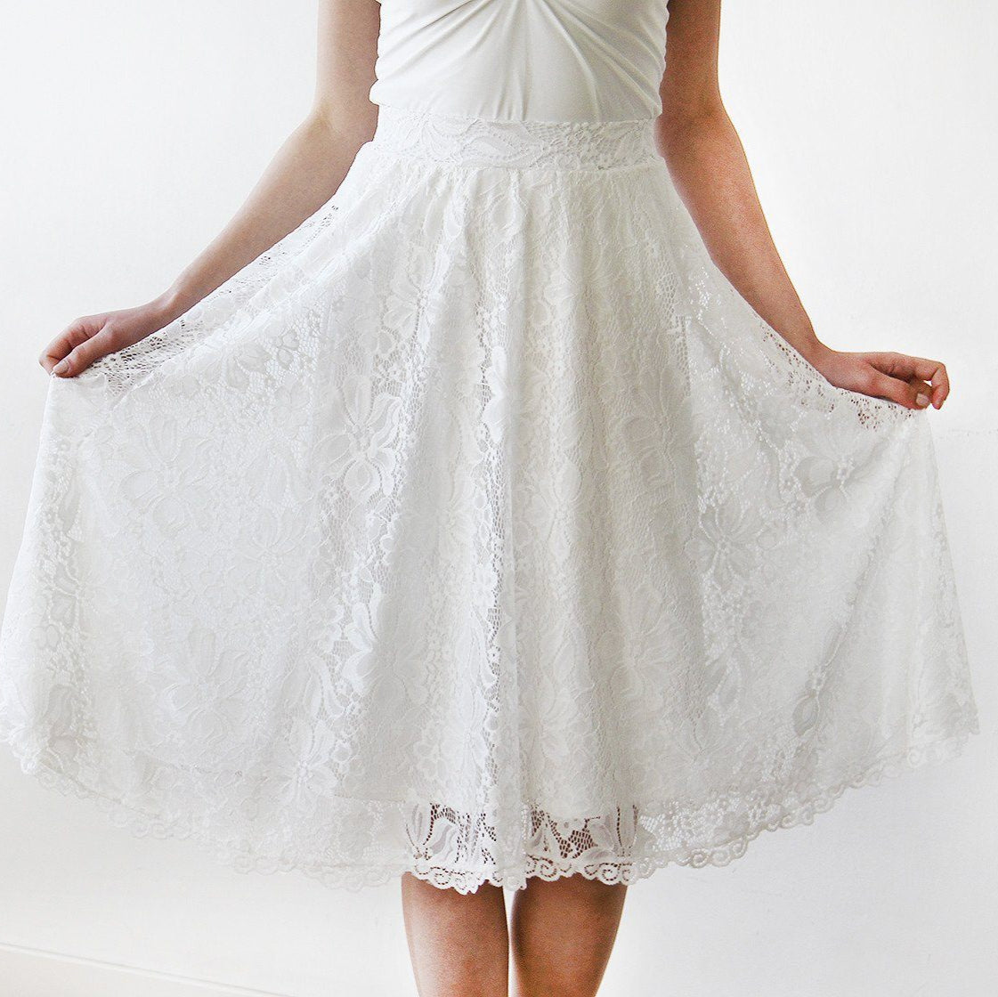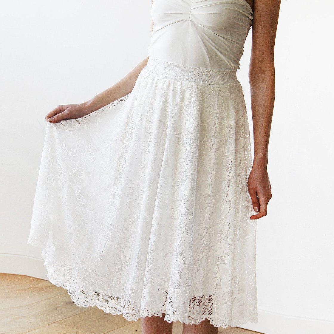 Women's Vintage Romantic White Lace Bridal A-Line Wedding Midi Skirt