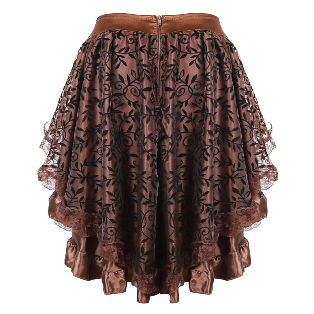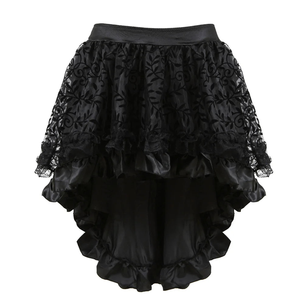 Women's Steampunk High-Low Victorian Pirate Skirt with Lace Trim