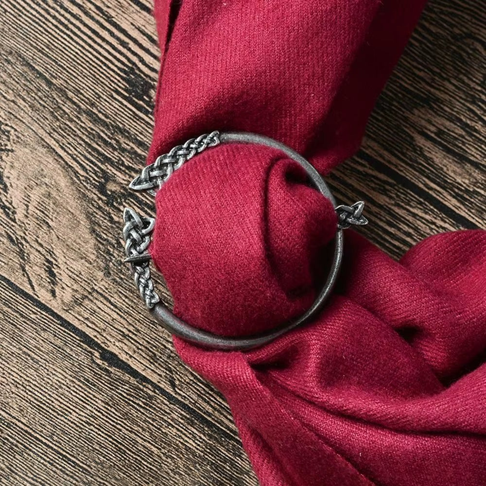 - Detailed Celtic knotwork and circular form echo traditional Viking and medieval cloak fasteners.